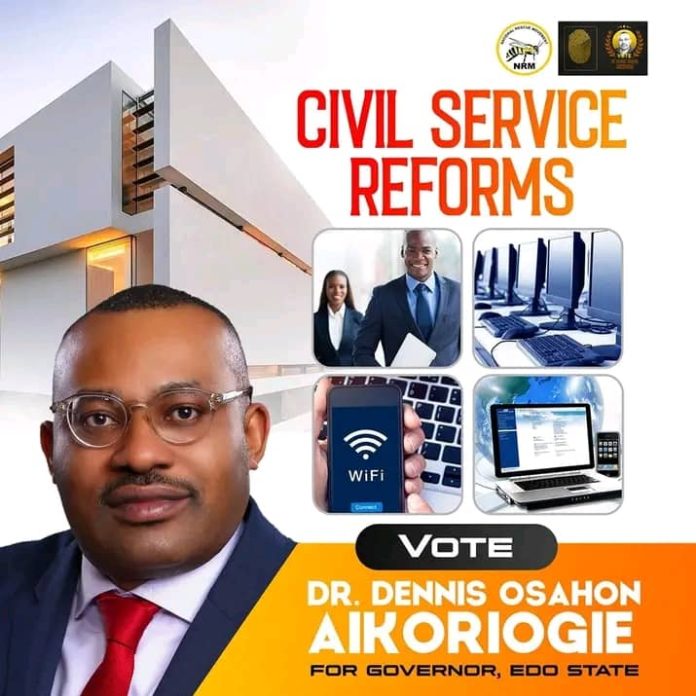 As the gubernatorial candidate of the National Rescue Movement (NRM) in Edo State, Dr. Dennis Osahon Aikoriogie is promising to bring about much-needed change in the civil service sector. With a clear vision and a detailed strategy, Dr. Aikoriogie plans to overhaul the civil service system in Edo State to ensure efficiency, transparency, and accountability.