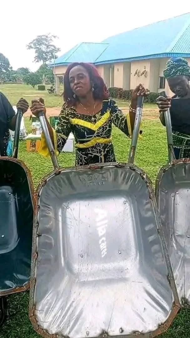 The initiative, tagged “Hyacinth Cares,” saw the distribution of wheelbarrows fitted with steel frames and 100-litre capacity, which state officials say are intended to assist women engaged in farming and small-scale trade, especially amid the growing security crisis that has limited access to farms and markets.
