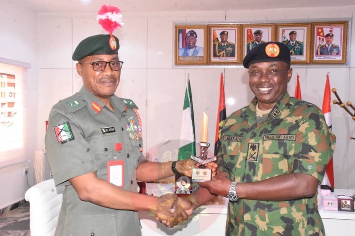 Major General Shagaya was warmly received by the Commandant of NASI, Major General Frank Etim, during the visit to the premier infantry training institution of the Nigerian Army.