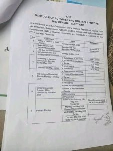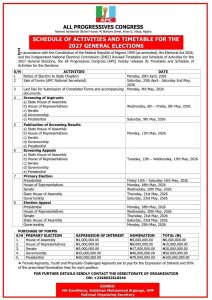 The All Progressives Congress (APC) has officially released its timetable and schedule of activities ahead of the 2027 general elections, outlining key processes leading to the party’s primaries.